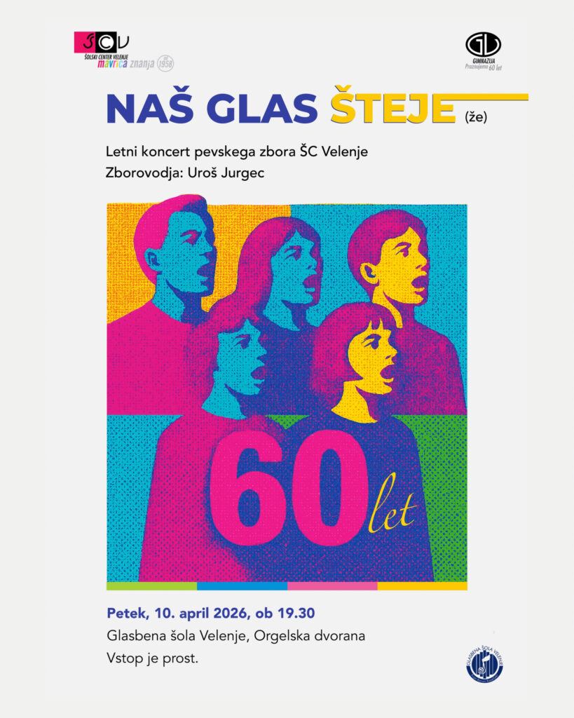 Prijazno vabljeni na letni koncert Mešanega mladinskega pevskega zbora Šolskega centra Velenje. Na njem bomo predstavili del svojega ustvarjanja v tem šolskem letu, med drugim tudi sklop programa, ki smo ga izvedli na gostovanju v pobratenem mestu Esslingen. Večer bo obenem tudi del praznovanja 60-letnice Gimnazije ŠC Velenje. Zbor bo vodil Uroš Jurgec. 🕒 Petek, […]